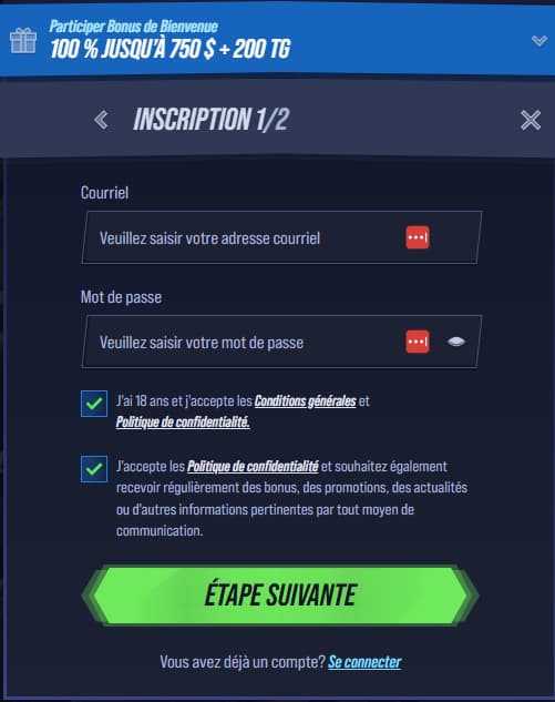 - Ouvrez le formulaire d'inscription et remplissez les informations de base pour accéder à notre offre de jeux.